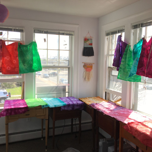Fabric Dyeing: This lesson was chock full of information including a little chemistry, learning about the color wheel, experimenting with different resist techniques and a heavy dose of mad science! The hardest part was putting the fabric aside until the next day!