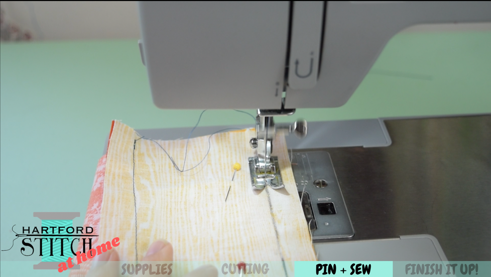 14. Here comes a tricky part! We're going to sew between those parallel lines of stitching (or if your lines aren't so parallel, sew generally along the bottom). You can use a pencil or snips to help push the fabric along and keep your fingers out of harms way. Remember to backstitch!